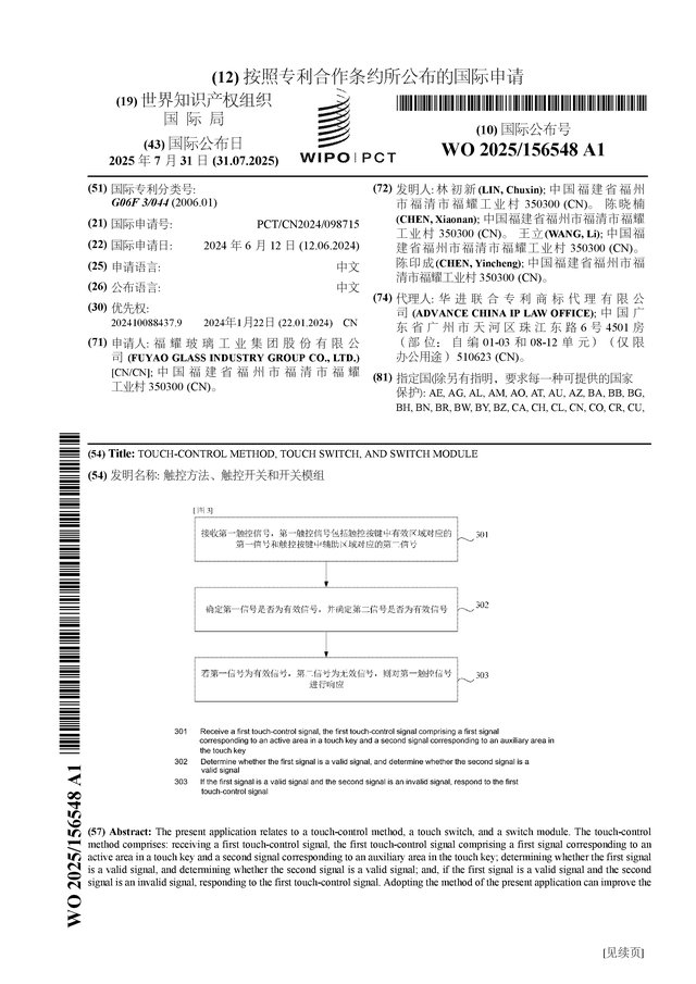 证券之星音信,左证企查查数据闪现福耀玻璃(600660)公布了一项海外专利肯求,专利名为“触控圭臬、触控开关和开关模组”,专利肯求号为PCT/CN2024/098715,海外公布日为2025年7月31日。